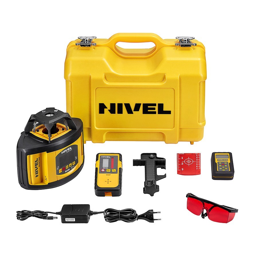 - Todo en el paquete : el NL540 viene de serie con un grupo de accesorios prácticos que respaldan el trabajo (sensor láser, soporte para bastón láser, control remoto, baterías de iones de litio, anteojos láser, objetivo láser, cargador, maletín de transporte)